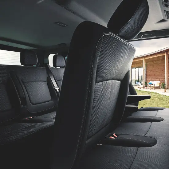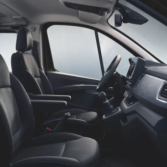 1) Vietos gausa: ir išties, Renault Trafic yra sukurtas taip, kad net keliaujant deviniese, Jūs jausitės patogiai ir komfortiškai. Projektuojant šį modelį, daug dėmesio skirta patogumui kelionių metu.